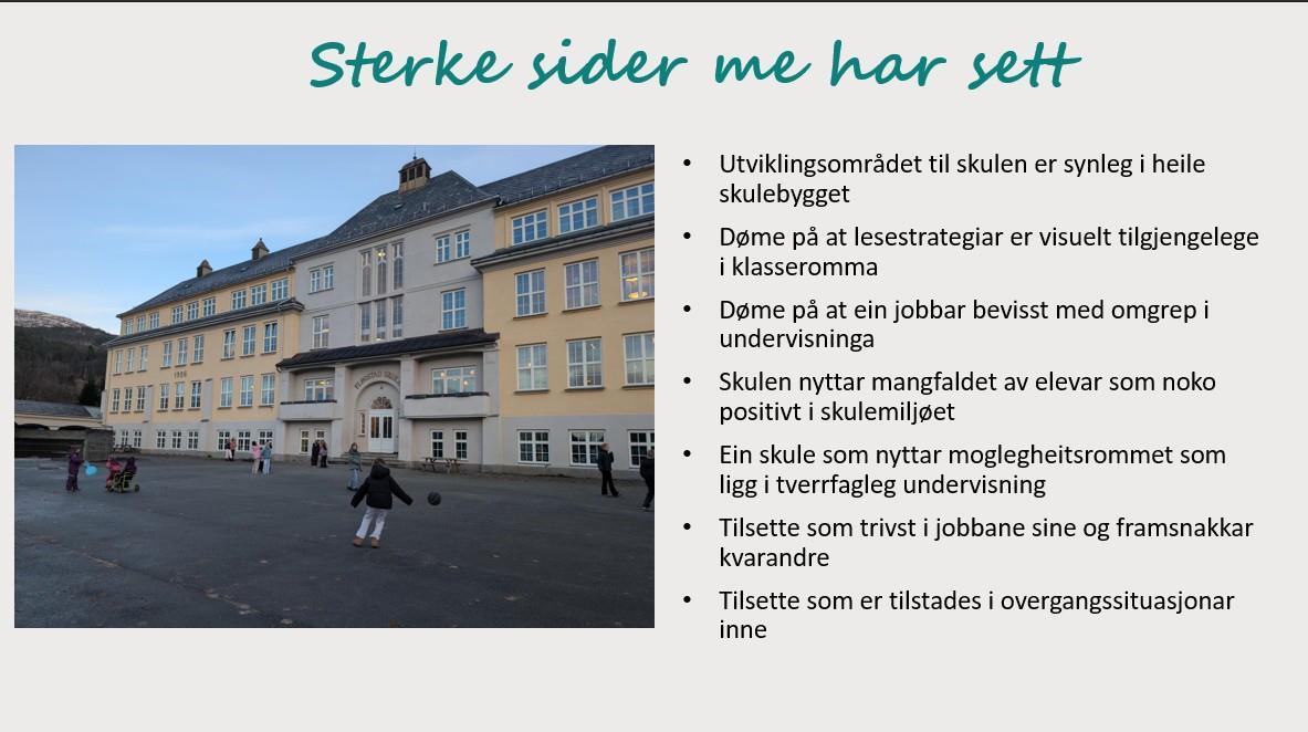 Dette inneber at eit team frå ein av nabokommunane kjem til barnehagen/skulen for å vurdere kvaliteten på arbeidet som blir gjort.